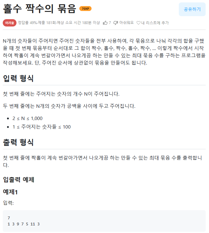문제 링크는 다음과 같다 : https://www.codetree.ai/missions/5/problems/odd-even-bundle?&utm_source=clipboard&utm_medium=text
