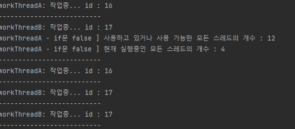 System.out.println(workThreadA.getName() + " - if문 false ] 현재 실행중인 모든 스레드의 개수 : " + Thread.activeCount());